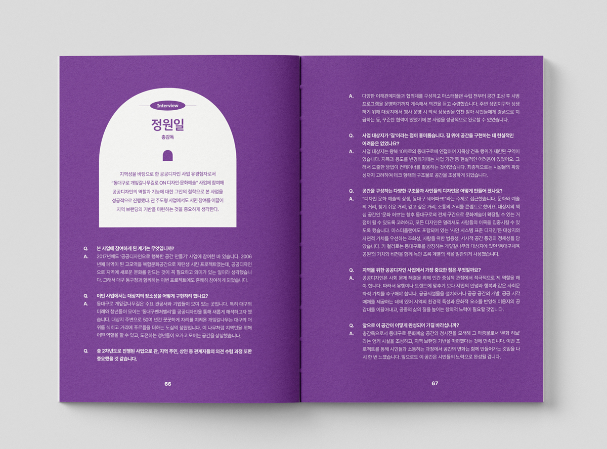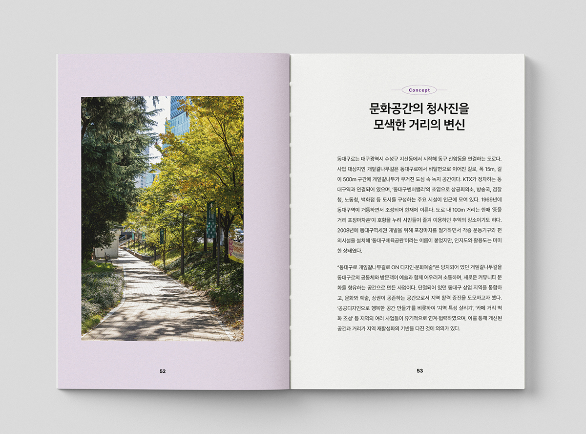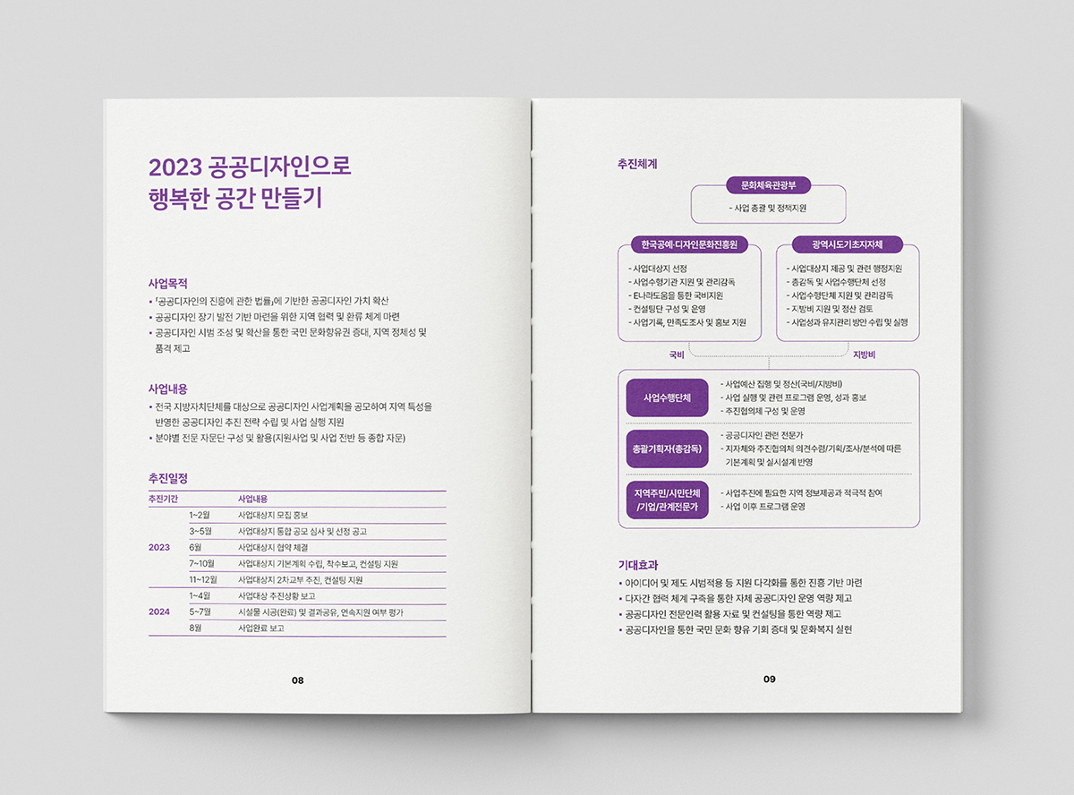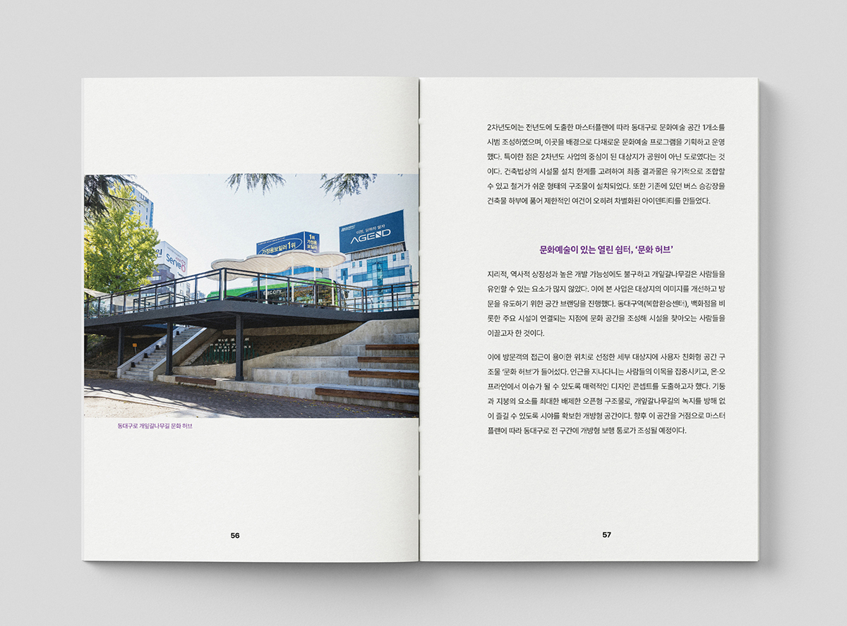 2023 공행공 결과 자료집을 진행했습니다.공행공 사업의 체계적인 시스템 안에서 이루어진기관과 지역 간의 협력과 조화를 정렬된 선으로표현하고 각 지역의 시설물을 그래픽화하여공공디자인을 통한 지역 정체성 확립을 강조했습니다.